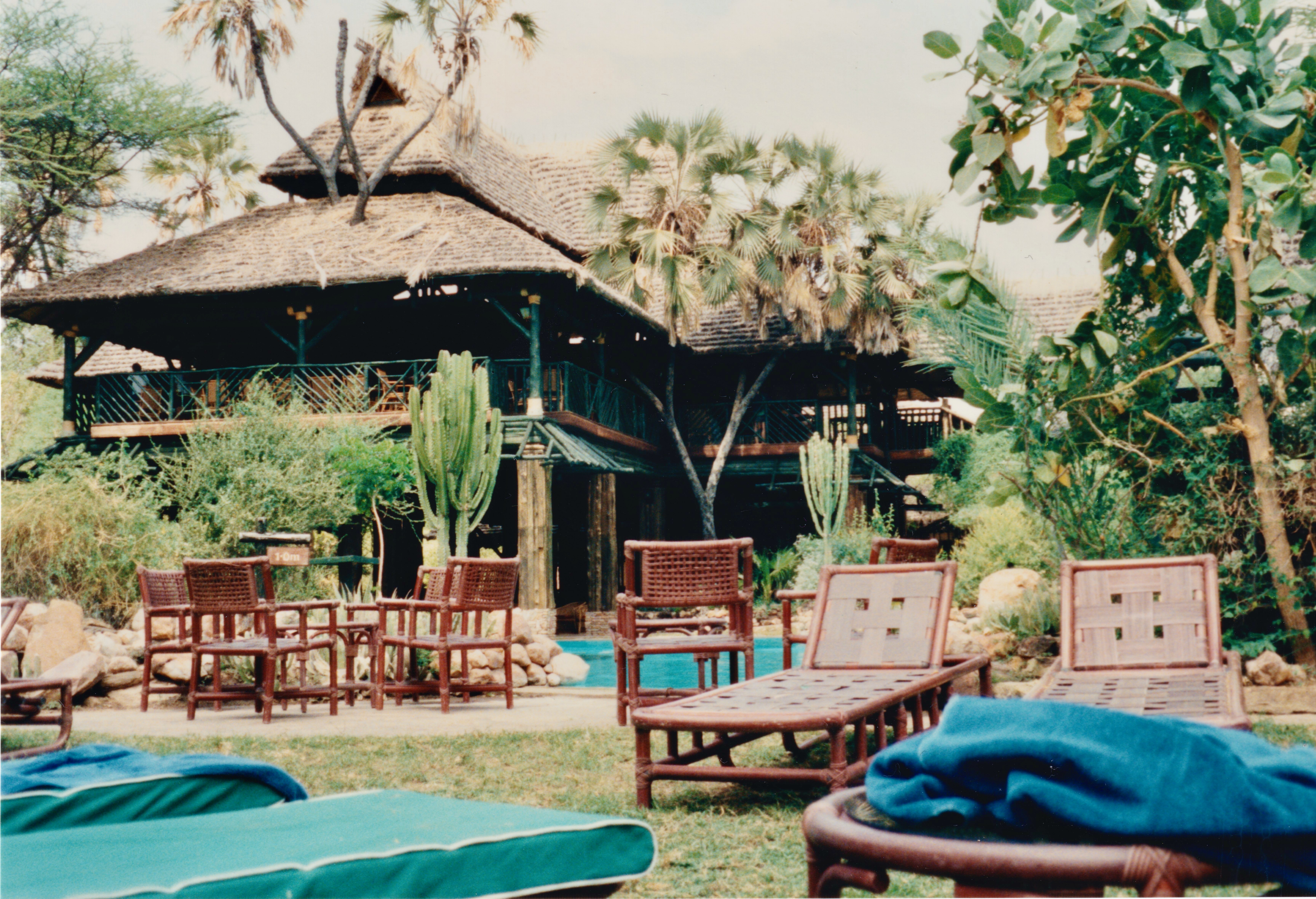 The Shaba Sarova lodge was located quite close to a river hence the crocodiles, but they couldn't get up the steep banks so we were safe. This was our base for visiting Samburu, Buffalo Springs and the Equator, where water rotates clockwise down the plug hole one side, and anti-clockwise the otherside.